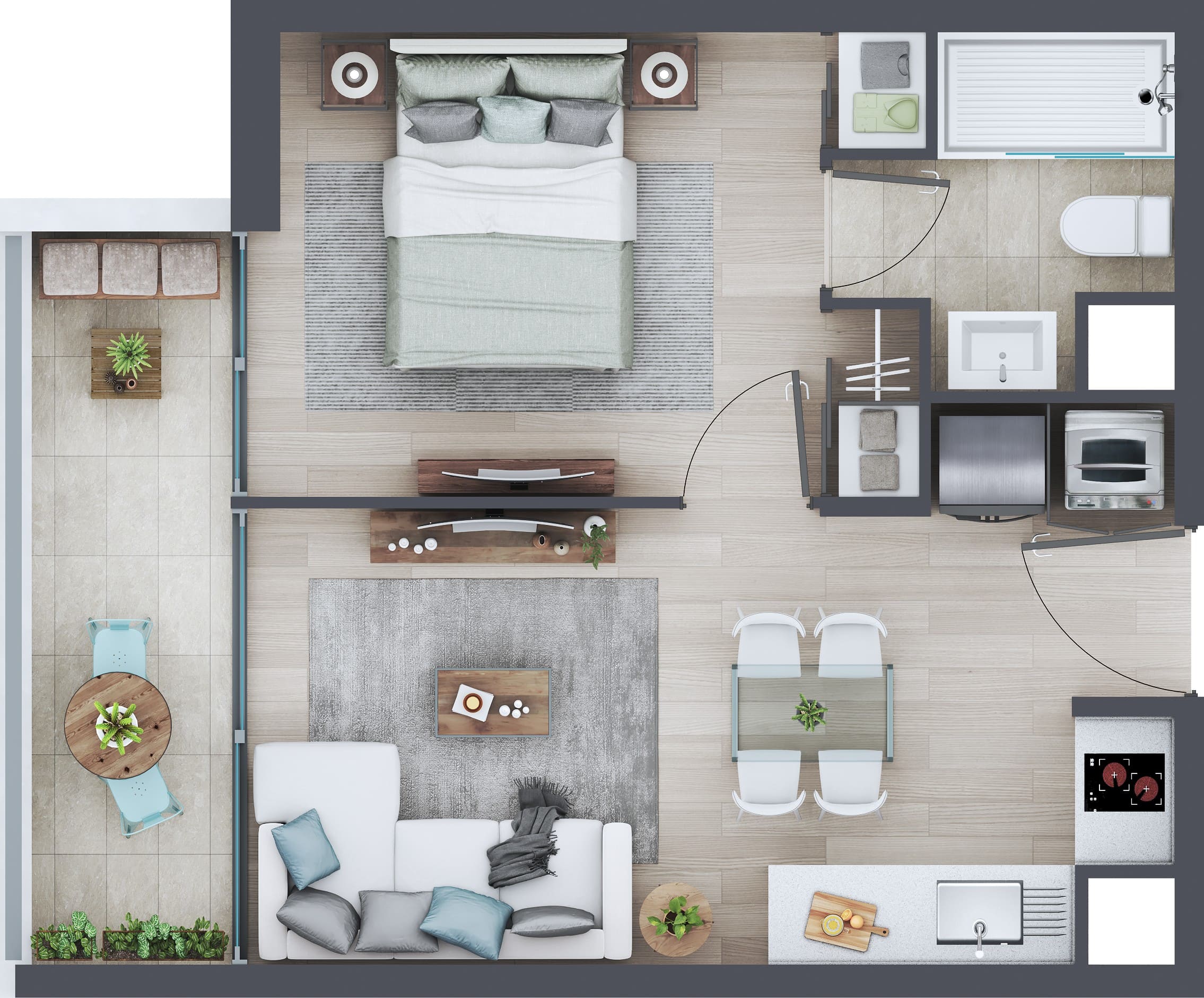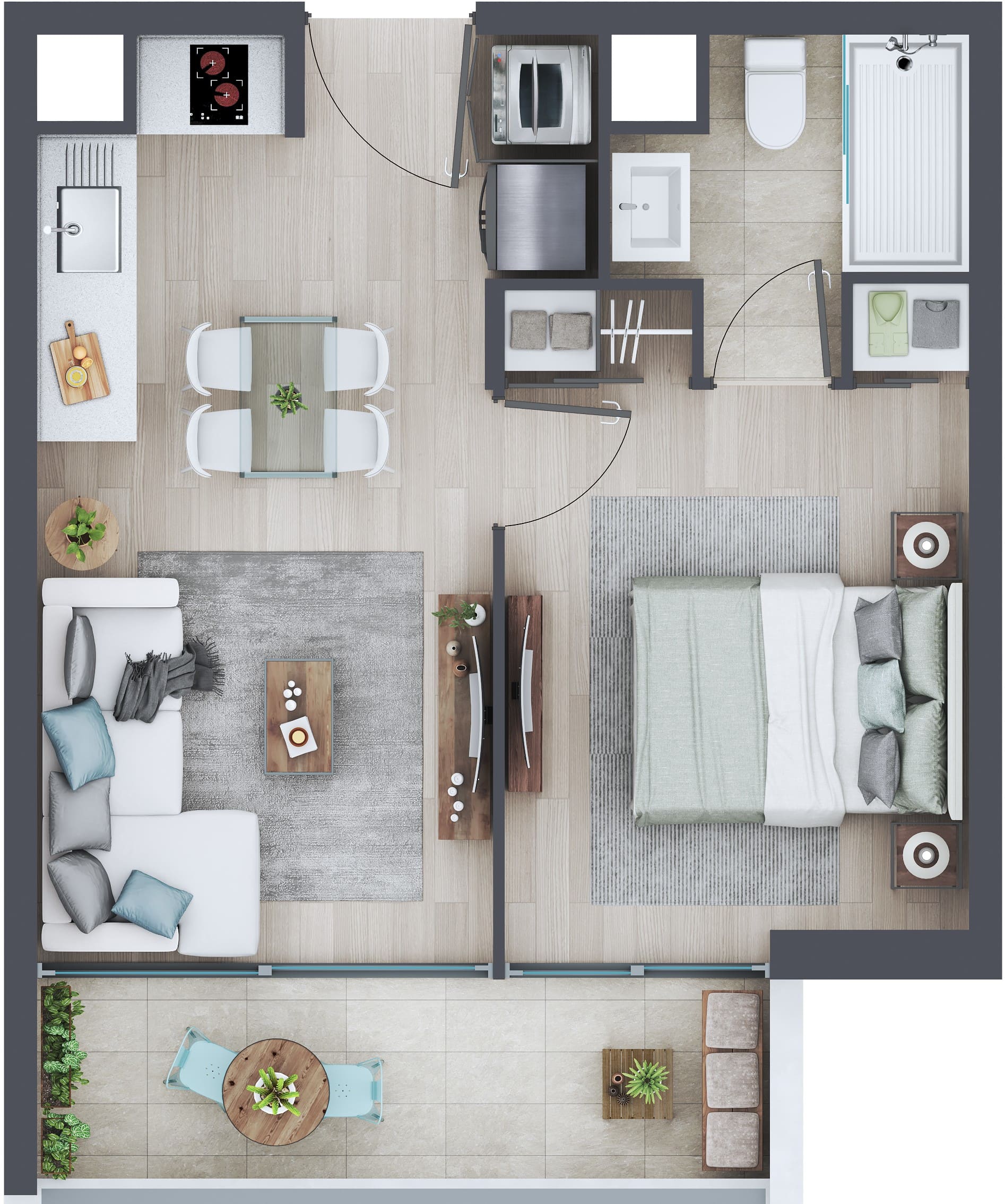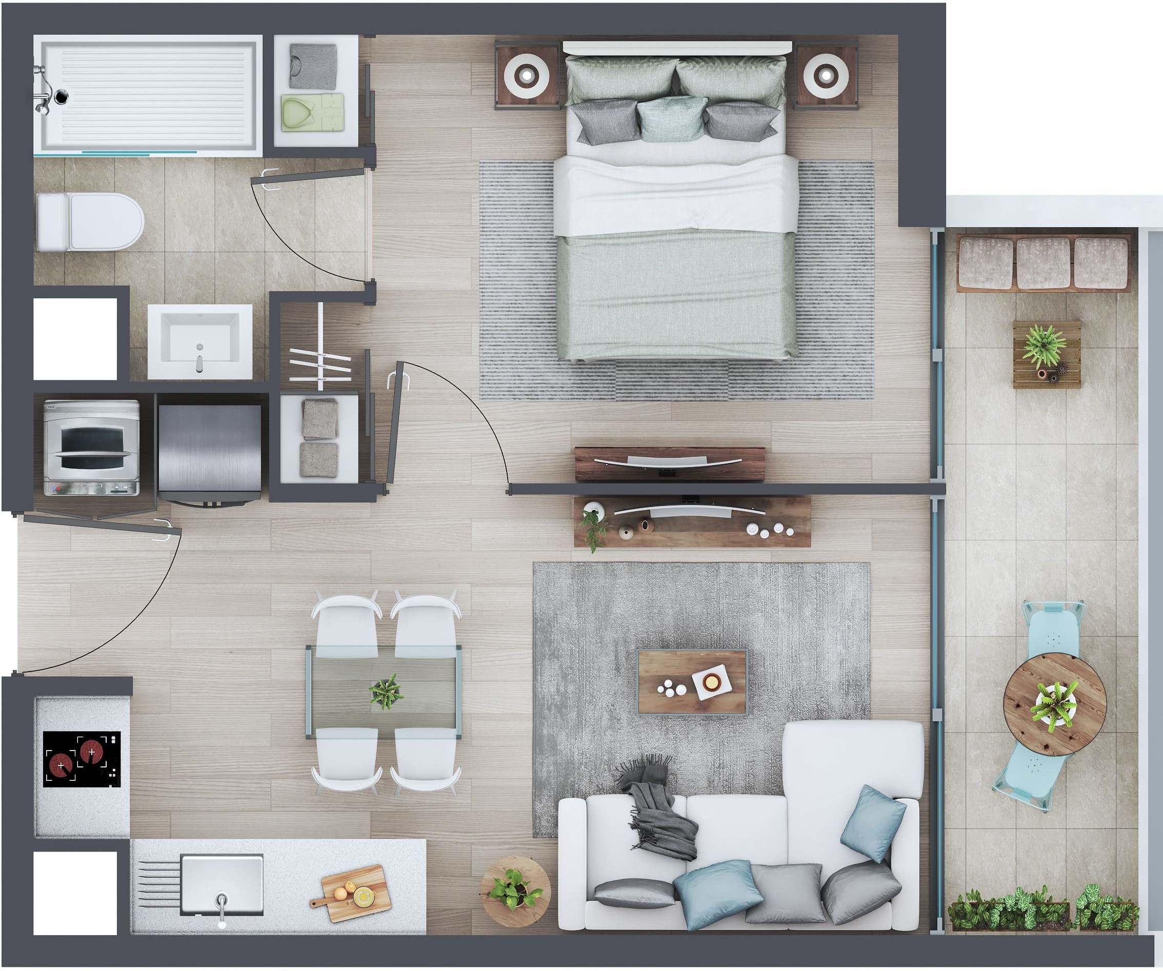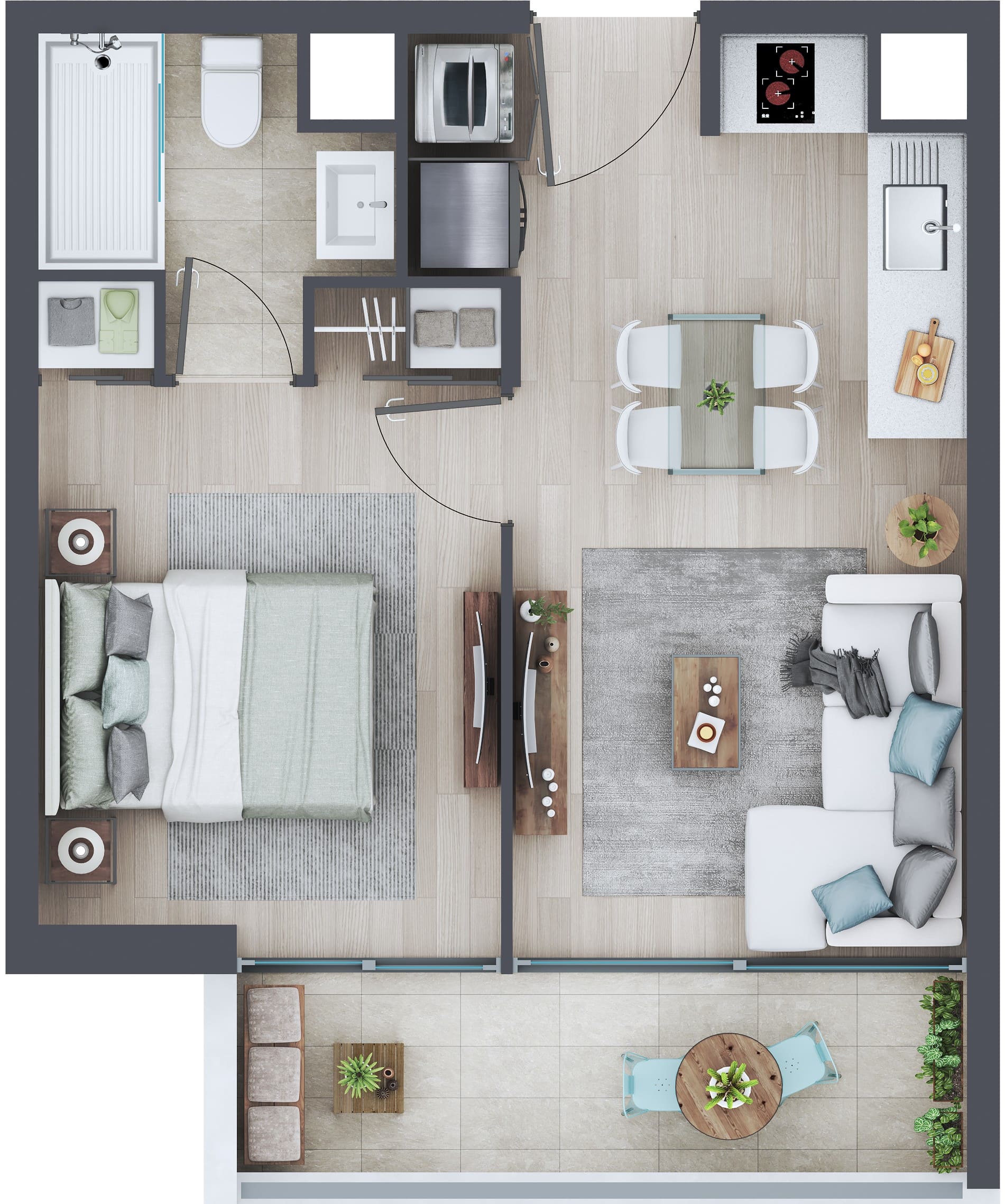 Con una arquitectura inspirada en el dinamismo urbano y en la necesidad de espacios versátiles, el proyecto propone un estilo de vida moderno, con áreas comunes que expanden las posibilidades de entretención, trabajo y descanso.