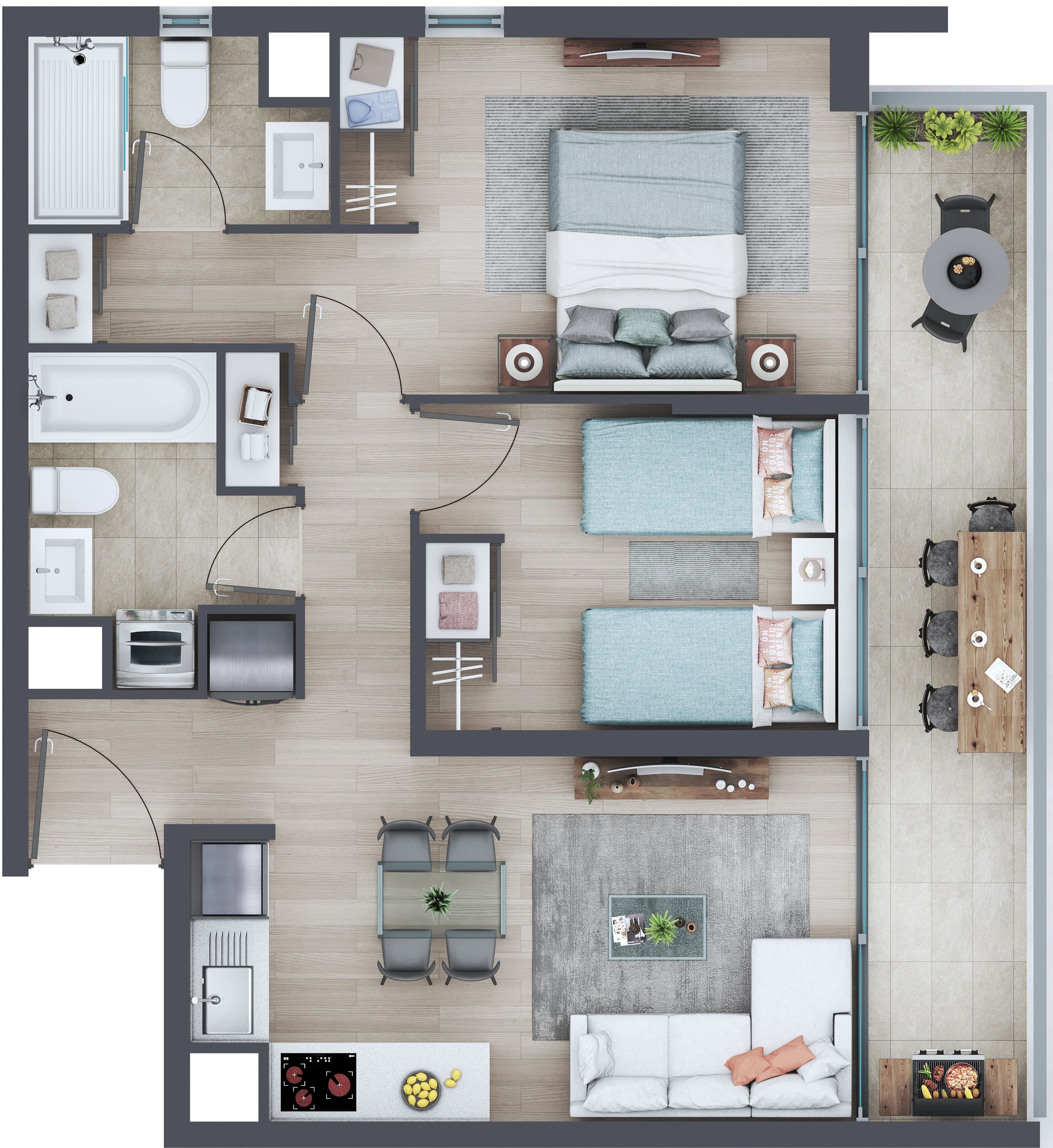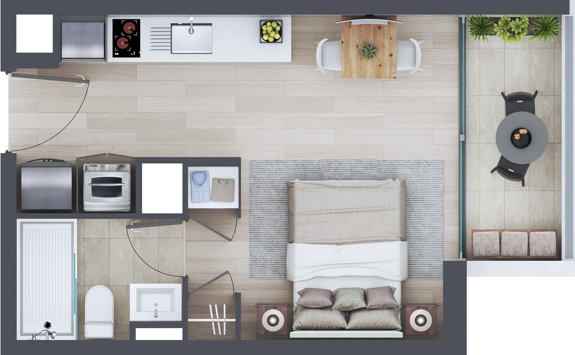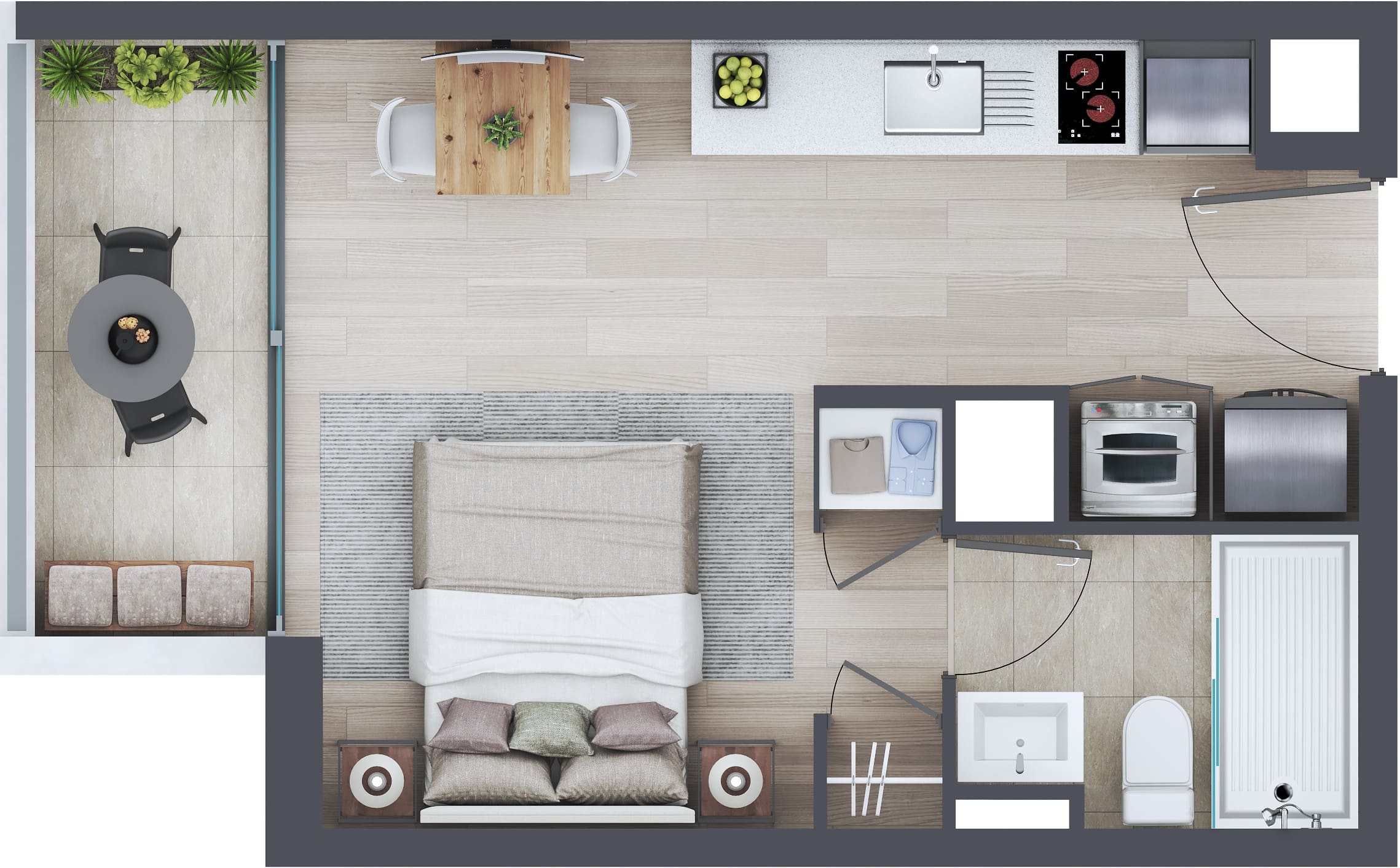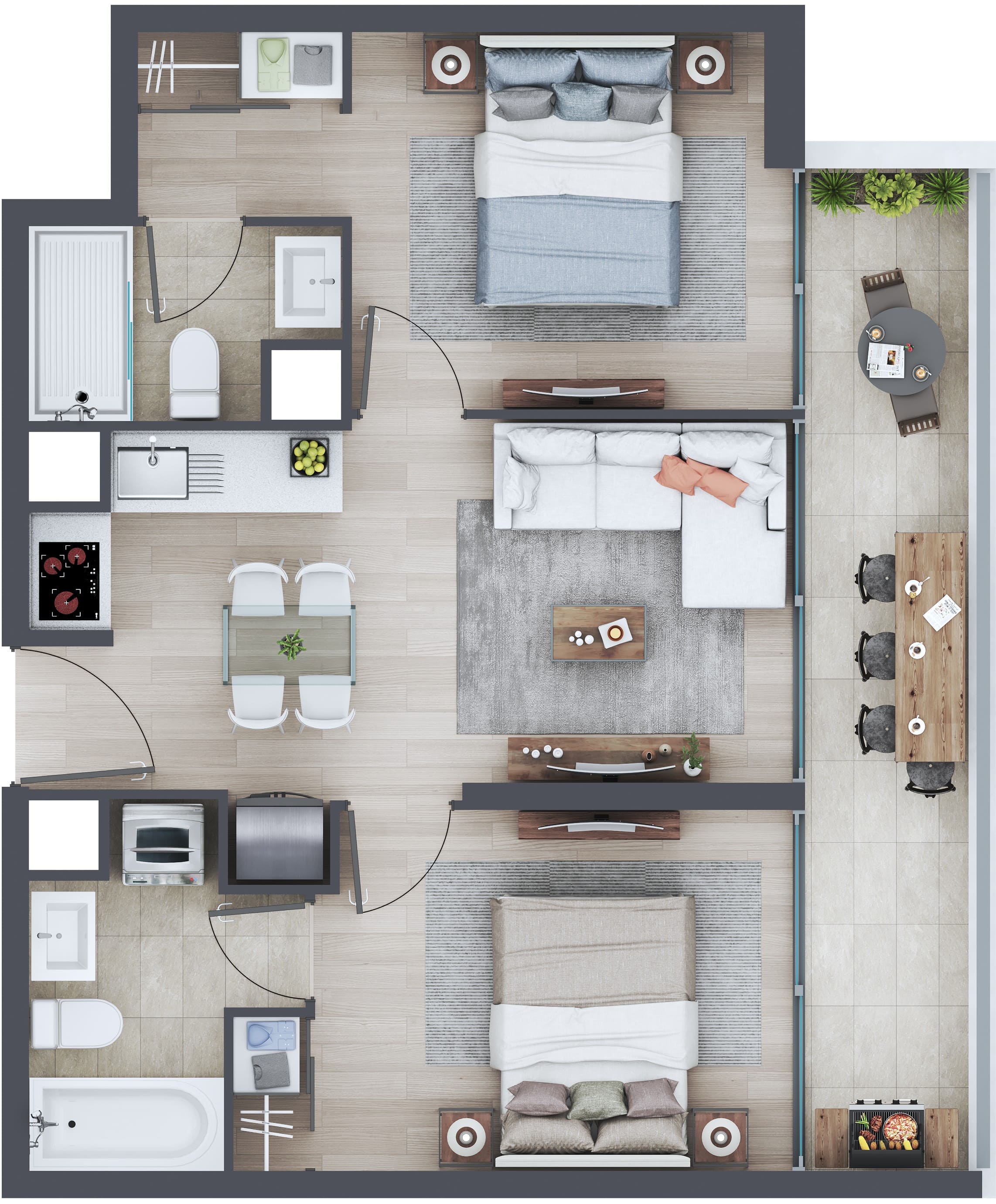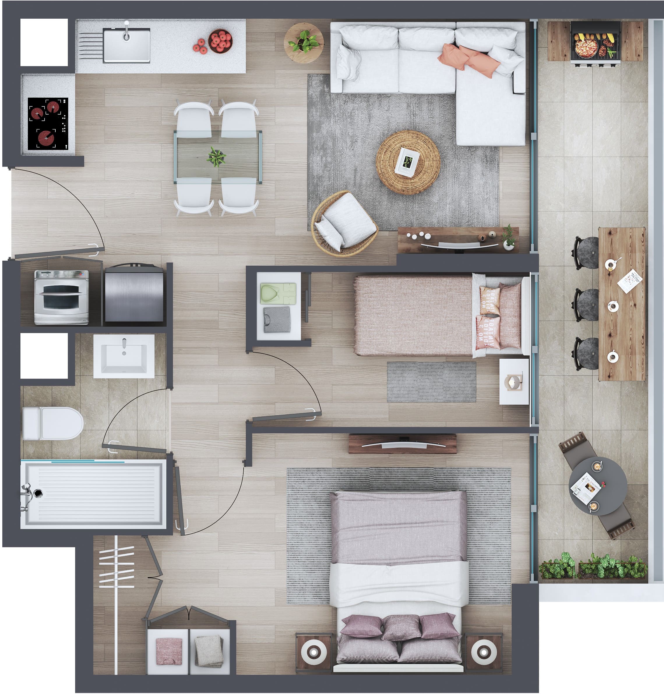Con una arquitectura inspirada en el dinamismo urbano y en la necesidad de espacios versátiles, el proyecto propone un estilo de vida moderno, con áreas comunes que expanden las posibilidades de entretención, trabajo y descanso.