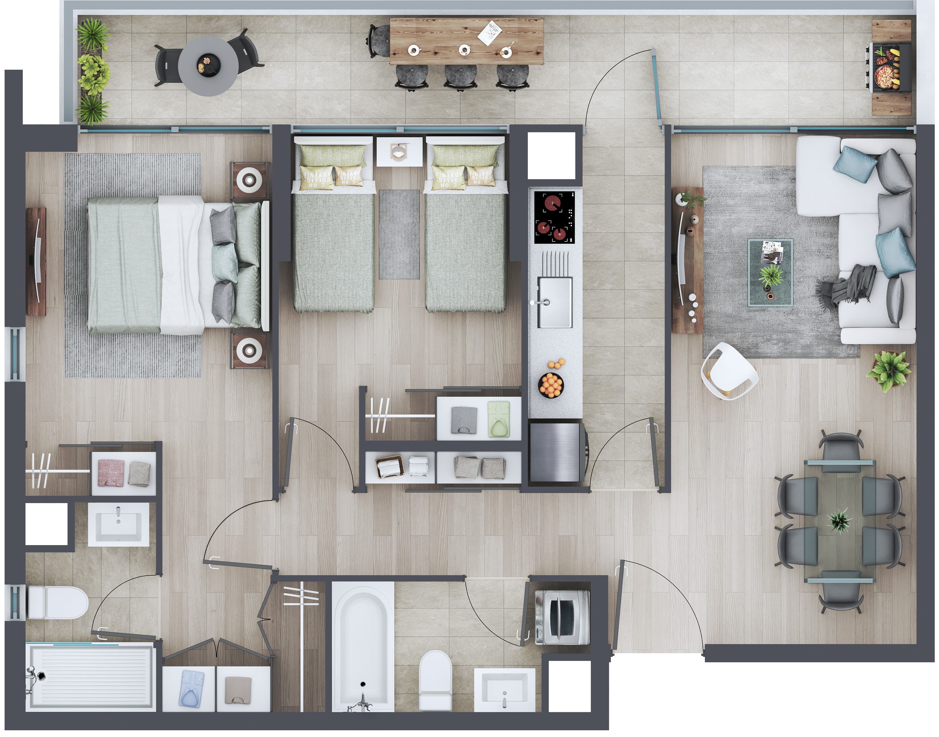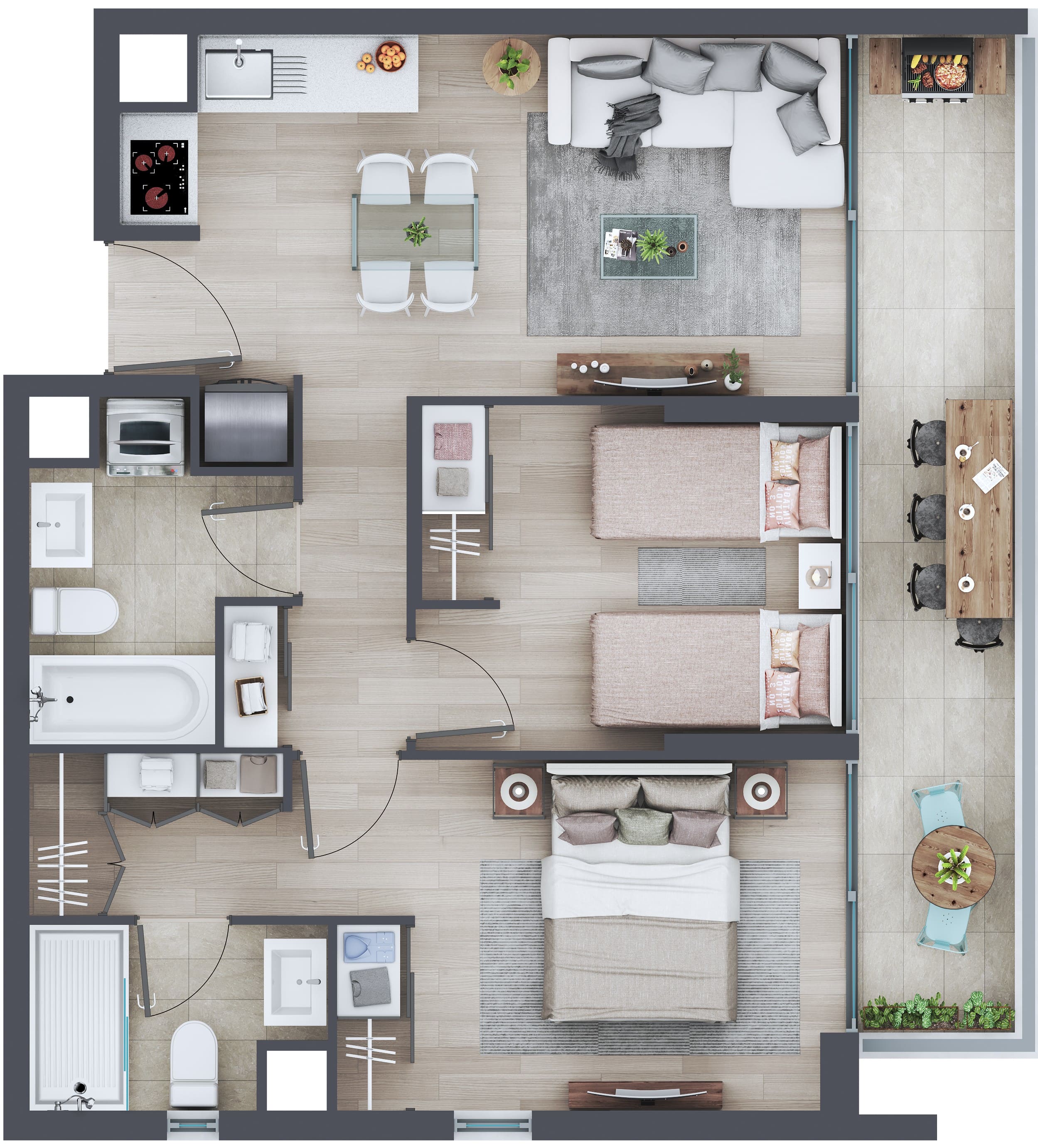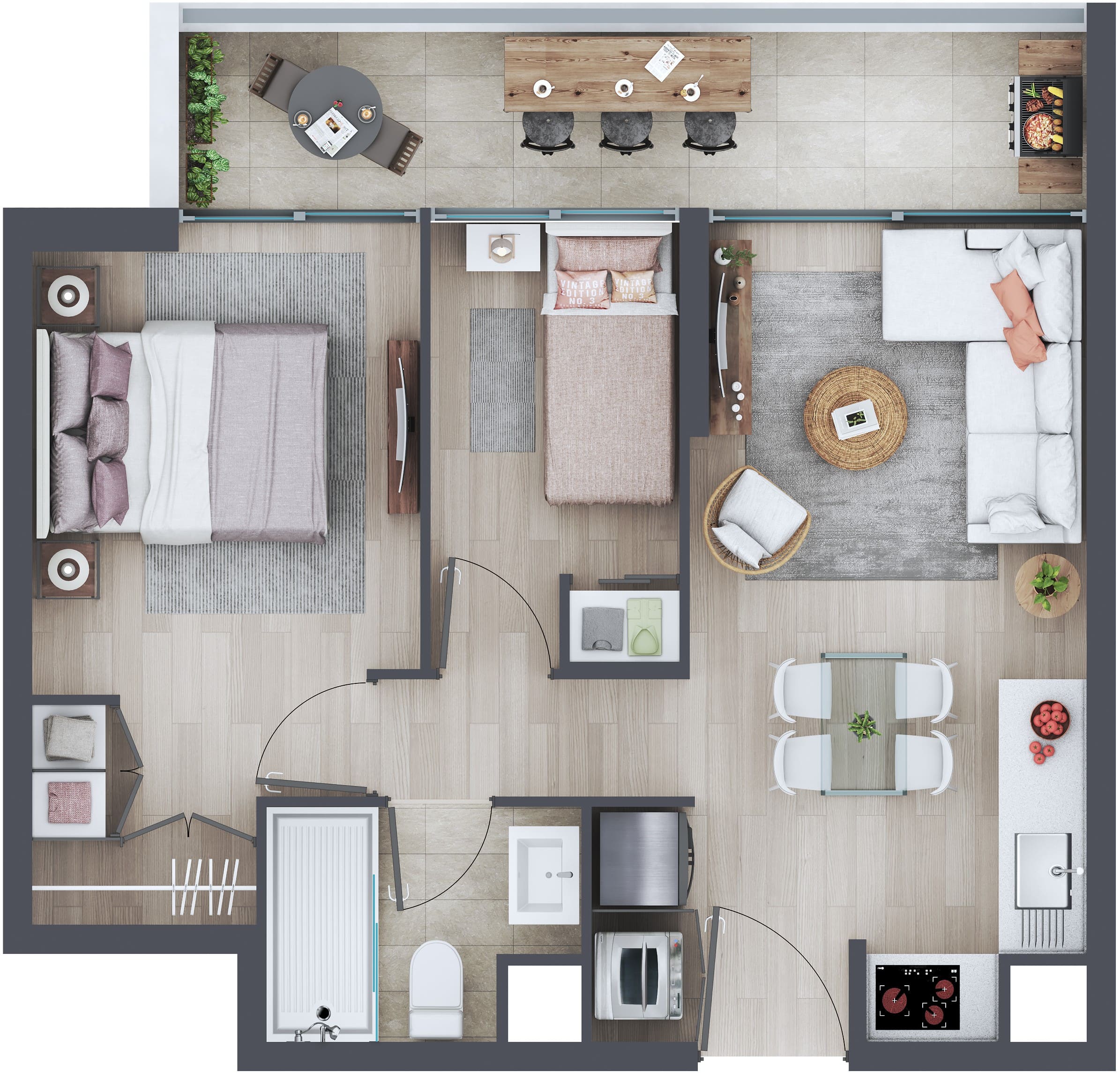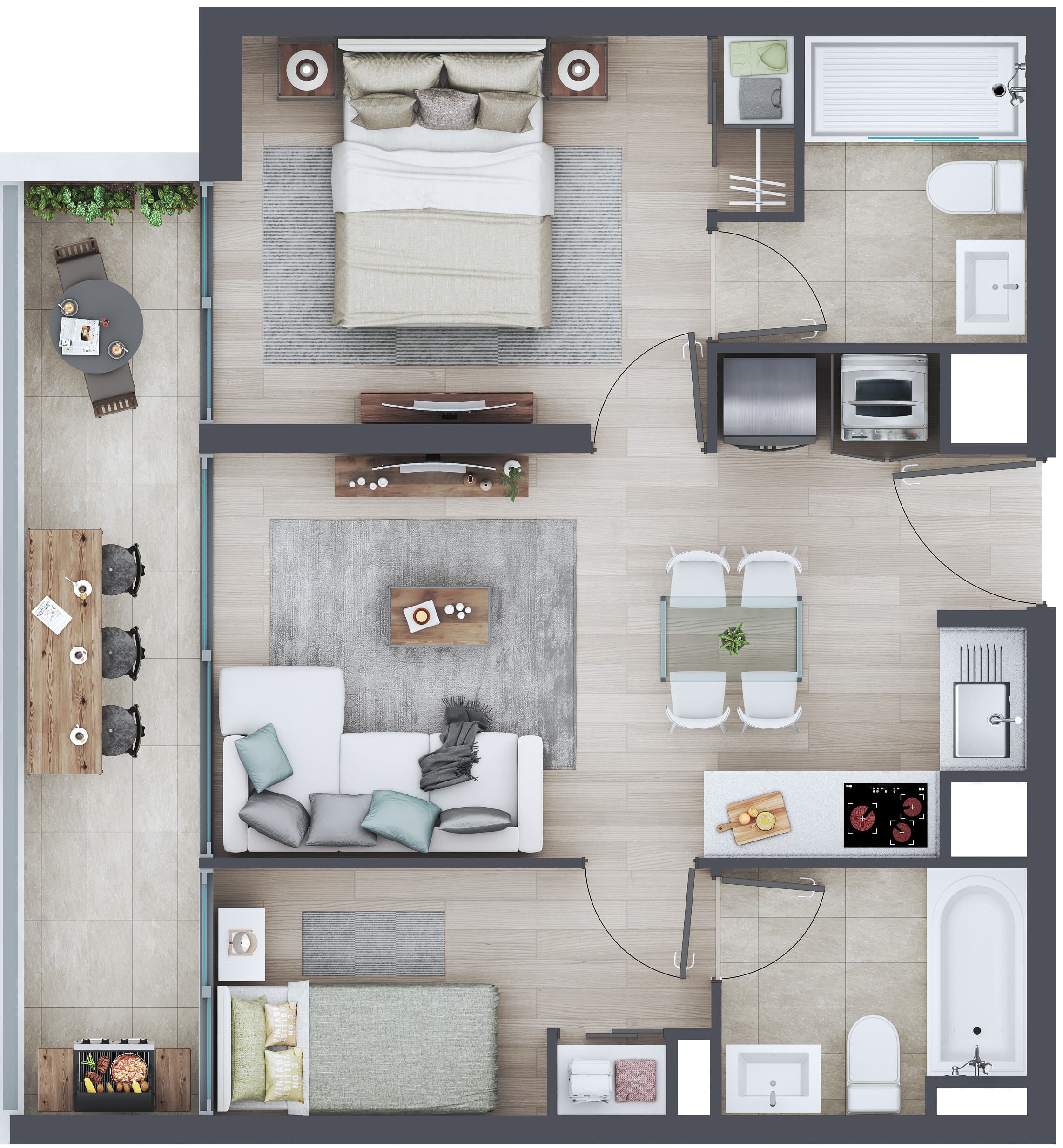 Con una arquitectura inspirada en el dinamismo urbano y en la necesidad de espacios versátiles, el proyecto propone un estilo de vida moderno, con áreas comunes que expanden las posibilidades de entretención, trabajo y descanso.